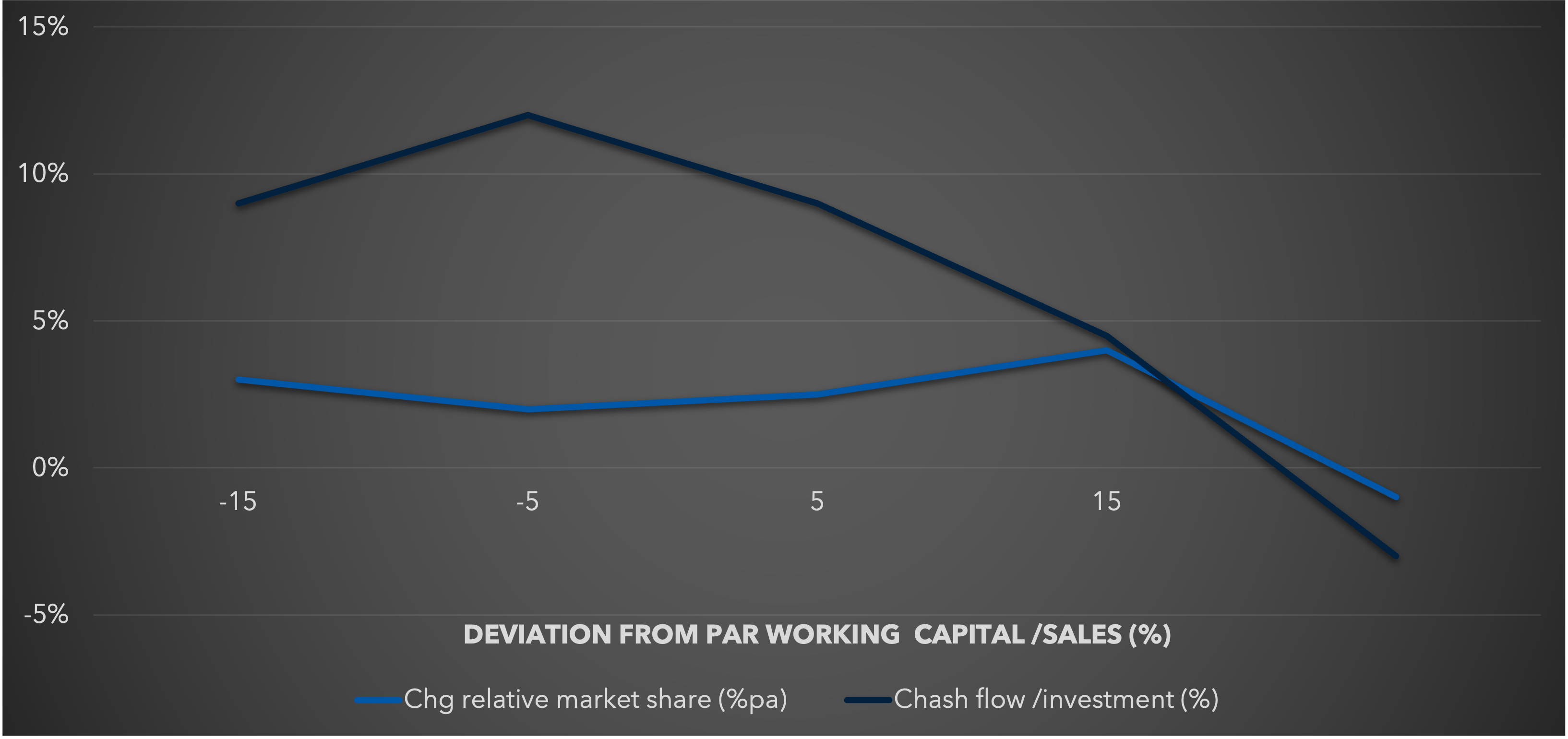 We are forced to conclude that a significant deviation from par measures management effectiveness rather than tactical aggressive-ness, though factors not present in the current PIMS data base, like seasonality or perishability, may be important in specific cases. Half of the businesses in the PIMS data base lie within 7 points of their par Working Capital / Sales ratio: