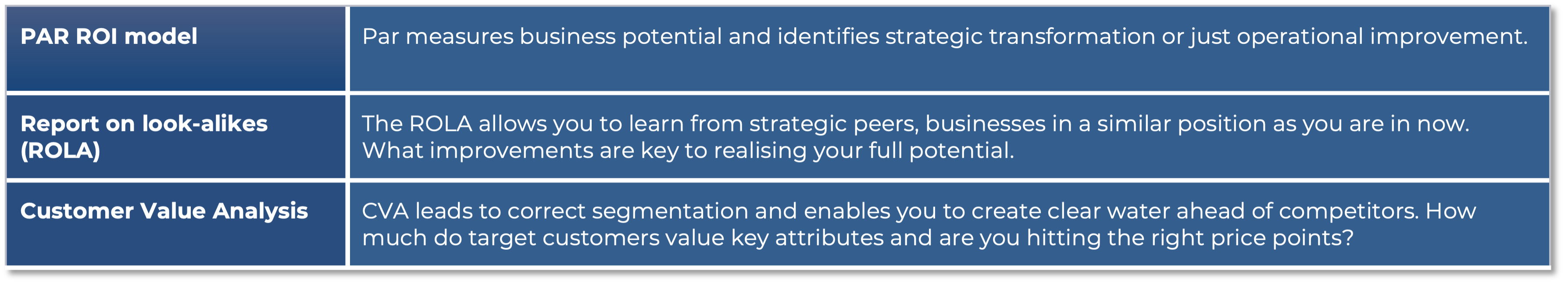Applying these tools to a portfolio of businesses takes 2 – 3 days unless the company really has no idea of customer perceptions for the CVA, in which case some external research is required.